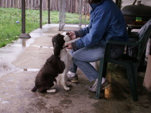 But no matter if obedience training is done in longer sessions or these shorter drill sessions of 5-10 minutes, something else is going on beyond simply teaching behaviors. In these moments when we come together around a physical exercise, we are both being “trained” to a picture of teamwork. In the end, we both become obedient not simply to a set of exercises, but to a relationship. It is a relationship where, through the grammar and syntax of training, I am saying to the dog, “I know you…I am fully present for you…You are vital to me.” And the dog is saying it back. That’s really what it’s all about.