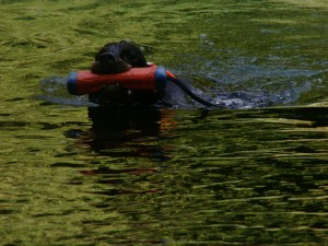Gael continues to surprise me with her versatility and boldness in trying new things. At a recent July field practice in Oregon, I took Gael to the pond. Just to see how she’d respond, and not really expecting much, I tossed out a stick a few feet into the water. Gael promptly dove into the water, swimming a little bit to get it. We kept at it that day, and after several retrieves with more distance added to her swimming each time, she didn’t want to leave!